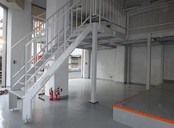 倉庫の上部空間を有効活用するメザニン型ユニットステージ